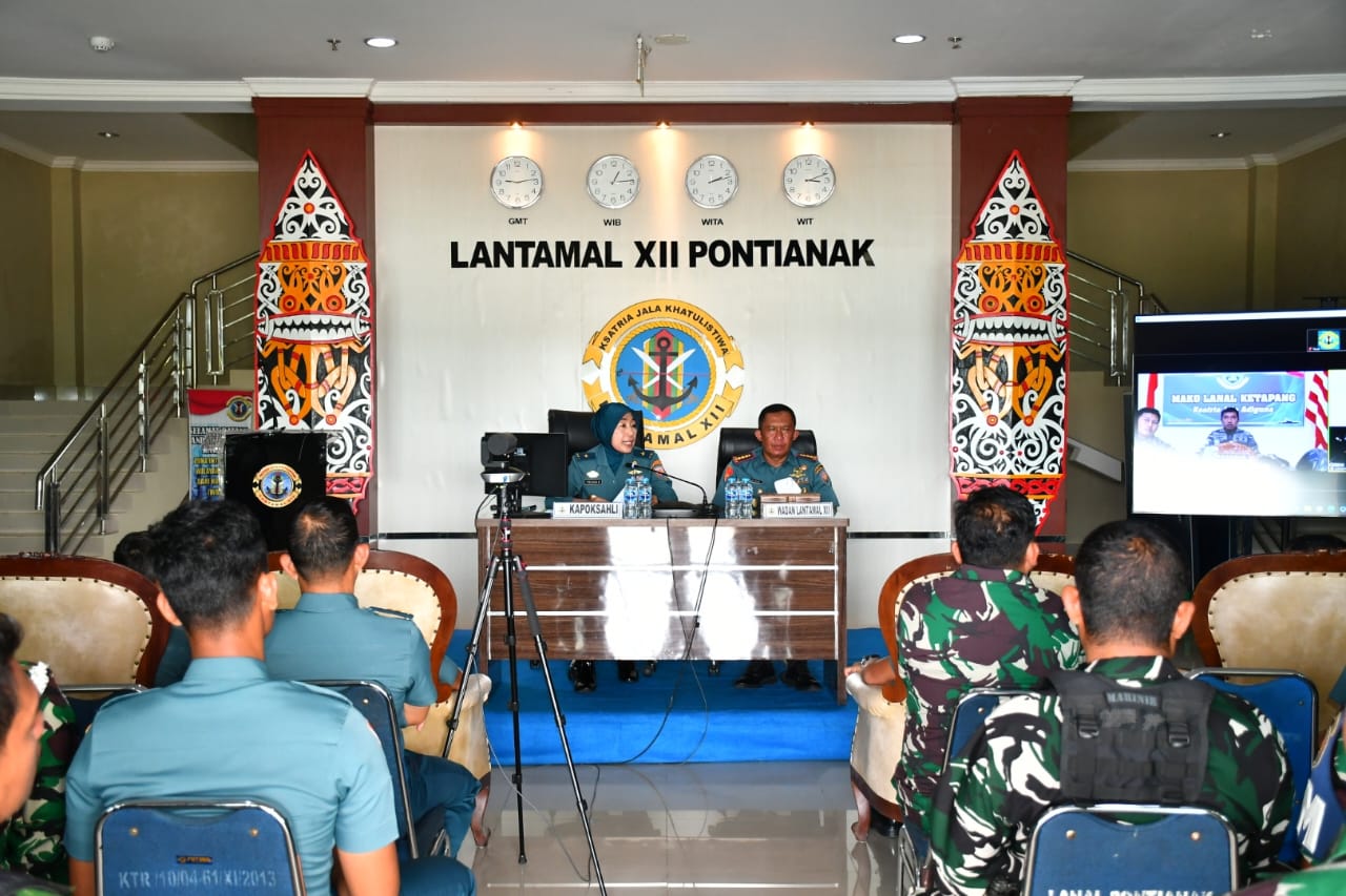 Kegiatan ini dihadiri oleh Pejabat Utama, Kadis dan Kasatker Lantamal XII serta seluruh Prajurit Lantamal XII, PNS, Prajurit Yonmarhanlan XII dan Danlanal Ketapang melalui Vicon.