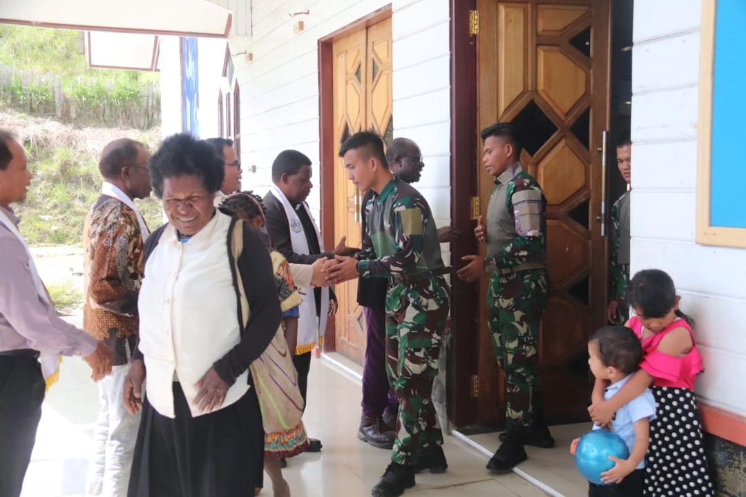 ”Hari ini, kami prajurit yang beragama Katholik/Protestan melaksanakan Ibadah bersama masyarakat di GKII Antiokhia Yokatapa,” ungkapnya.