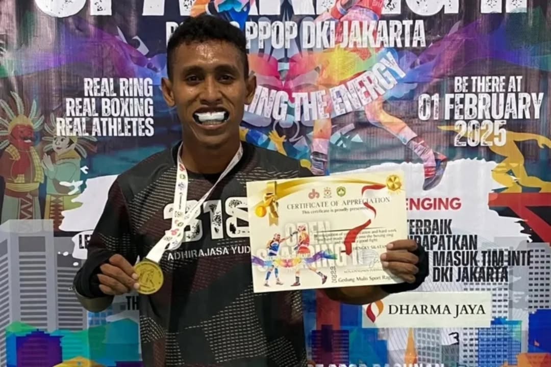 JAKARTA – Prajurit Yonif 318 Divif 1 Kostrad Pratu Zulfikar Kapitan kembali menunjukkan taringnya yang sukses meraih medali emas di kelas 63 kg setelah menang TKO di ronde 2 dalam ajang “BOXING PPOP DKI JAKARTA”. Sabtu (1/2/2025).