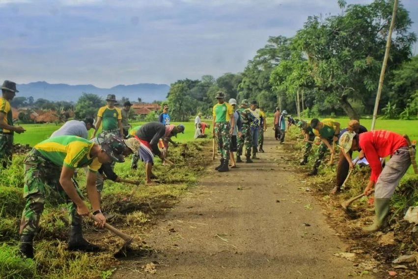 Prajurit Yonif 321 Kostrad bersama Masyarakat Melaksanakan Karya Bakti