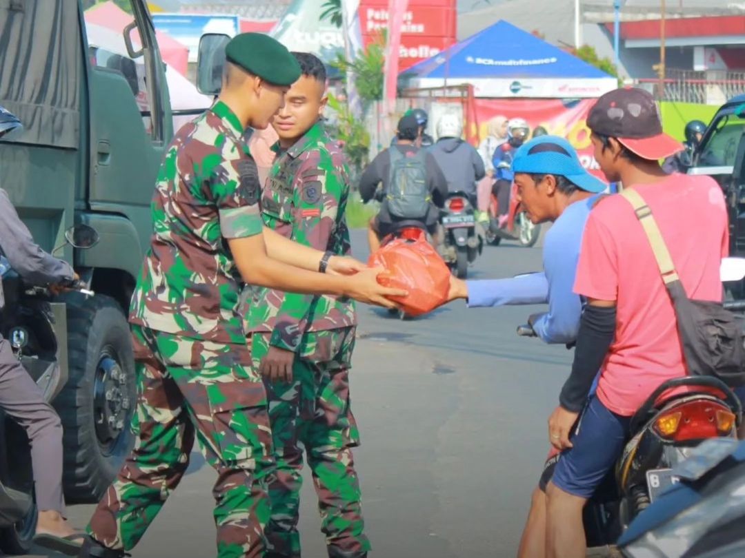 Prajurit Yonif 328 Kostrad Bagikan Nasi Kotak di Cilodong untuk Jalin Silaturahmi