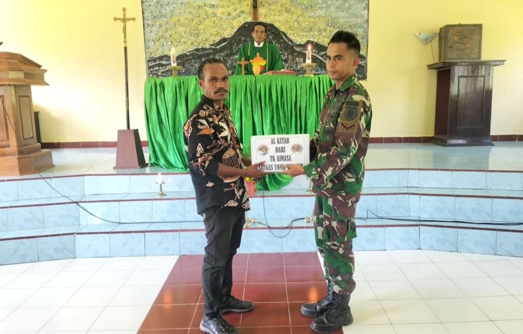 Sebagai bentuk dukungan terhadap perkembangan spiritual masyarakat, para prajurit juga menyerahkan Alkitab kepada Gereja St. Andres. Pemberian ini disambut hangat oleh jemaat yang merasa bersyukur dan berterima kasih atas perhatian yang diberikan oleh TNI.