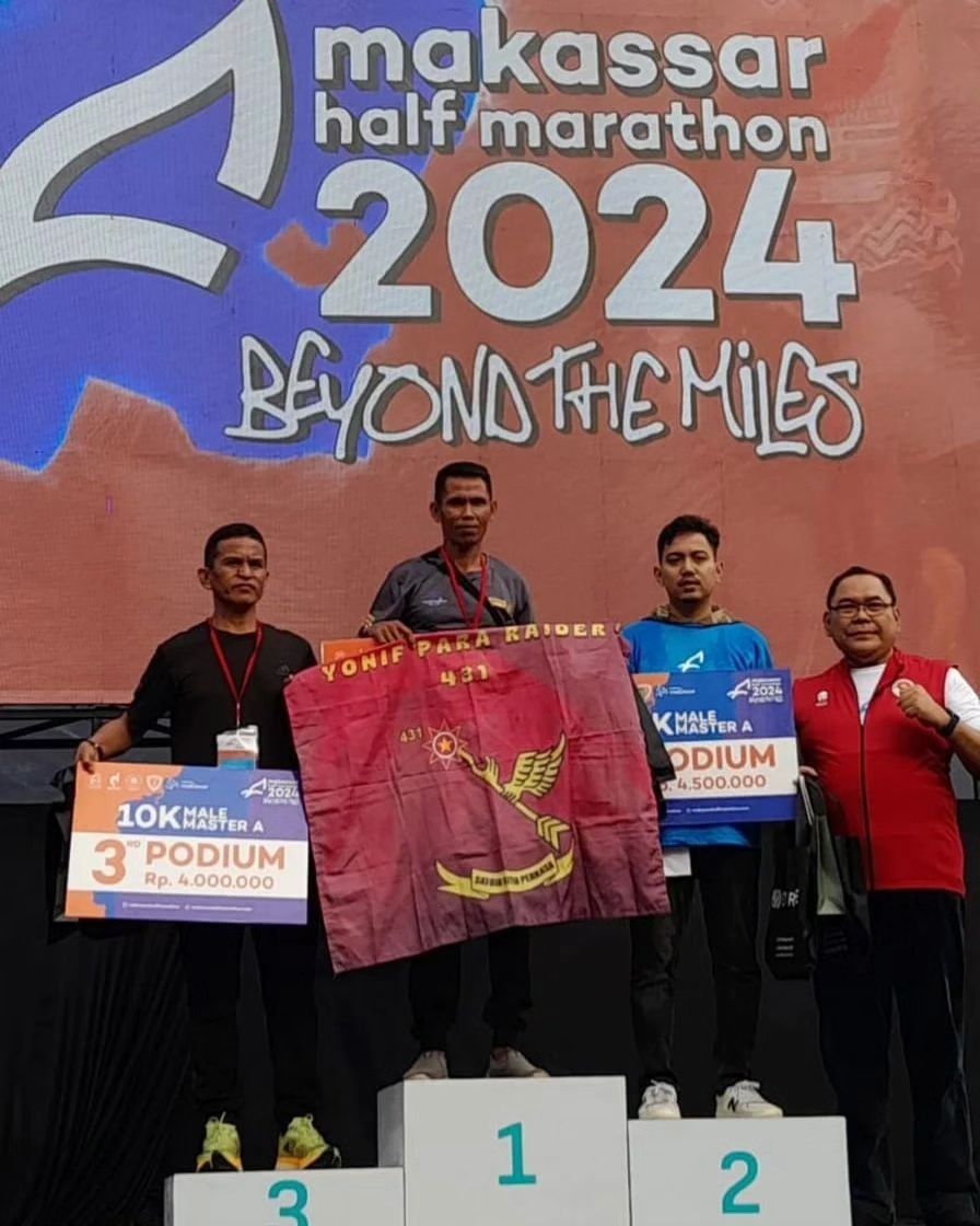 Keberhasilan mereka tidak berhenti di situ, Serka Jufri dari Yonif 431/SSP meraih podium pertama dalam Kategori 10K Master Nasional, menggenapi perolehan medali yang membanggakan bagi Brigif 3/TBS.