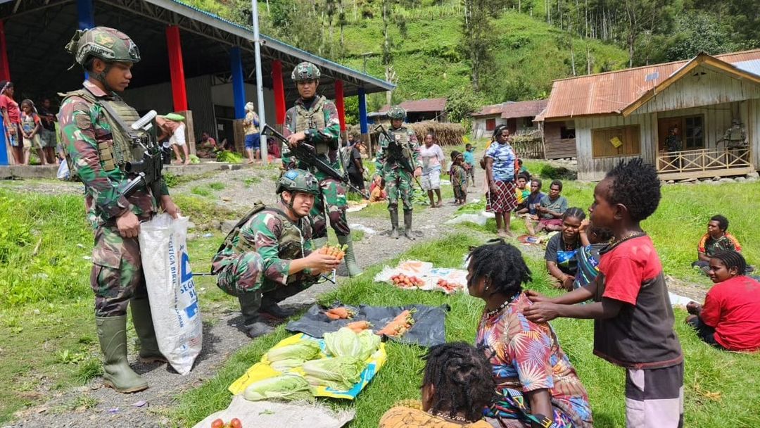 MetropolitanPost.id – Program Borong Hasil Tani (ROSITA) Pos Beoga Satgas Mobil Yonif 323 Kostrad Pimpinan Lettu Inf Ari secara rutin membeli sayuran Mama Asli Papua di Kp Milawak, Distrik Beoga, Puncak, Papua, Rabu (01/05/2024).