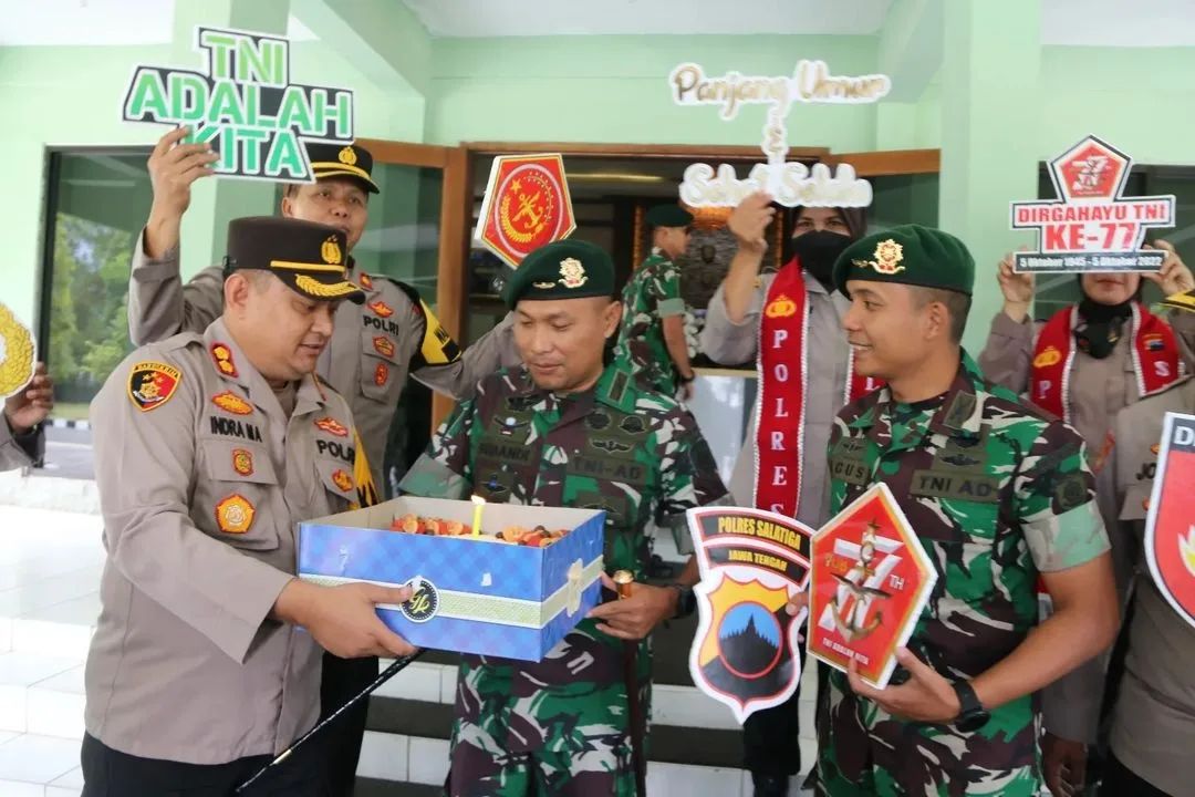 “Kami sengaja memberikan kejutan Markas Yonif Mekanis Raider 411 Kostrad, mewakili segenap keluarga besar Polres Salatiga mengucapkan Dirgahayu ke-77 TNI, “TNI ADALAH KITA,“ ucap Kapolres Salatiga.
