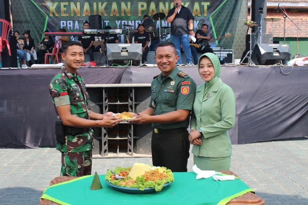 Syukuran kenaikan pangkat ini dilaksanakan secara sederhana dan khidmat yang diawali dengan sambutan Wakil Komandan Batalyon, doa bersama kemudian dilaksanakan pemotongan tumpeng oleh Wadanyon dan diserahkan kepada prajurit termuda atas nama Pratu Ferdi Yuda dan Prajurit yang akan memasuki masa pensiun yaitu Peltu Wakib.