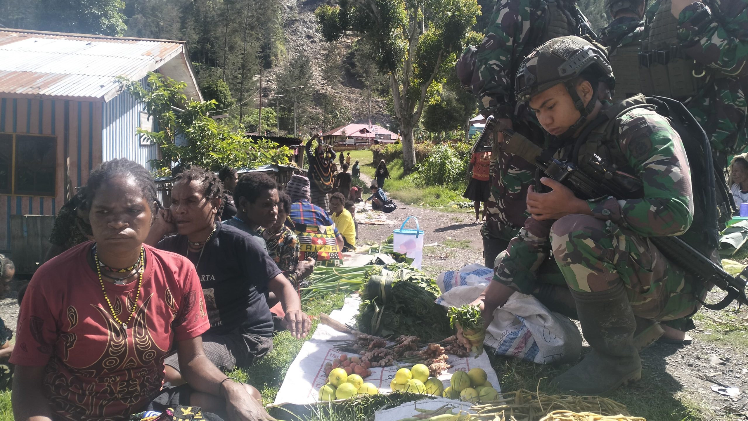 inisiatif Satgas Yonif 323 Kostrad yang memborong hasil tani warga Kampung Dengkibuma.