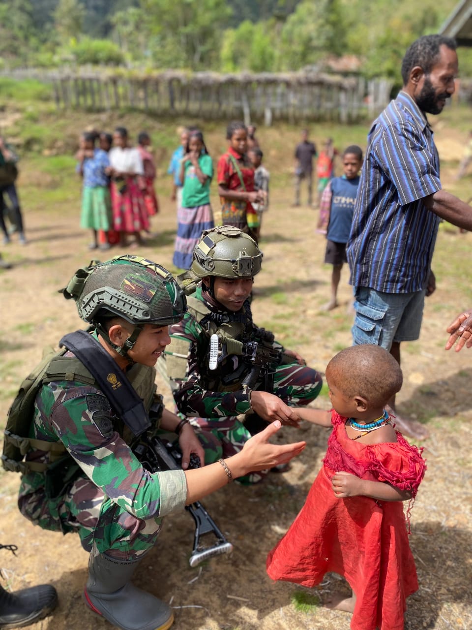 MetropolitanPost.id – Satuan Tugas Batalyon Infanteri (Satgas Yonif) Para Raider 432/Waspada Setia Jaya Kostrad, salah satu Satuan Jajaran Komando Operasi TNI (KOOPS TNI) di Papua, saat pelaksanaan pengamanan wilayah Kampung Opmu, Distrik Mbuwa, Kabupaten Nduga, Provinsi Papua Pegunungan, Kamis (11/7/2024). Para prajurit Satgas Yonif 432 Kostrad melintasi area Pasar Opmu dan melakukan program ROSITA atau Borong Hasil Tani milik warga yang sedang menjual hasil taninya di area pasar.