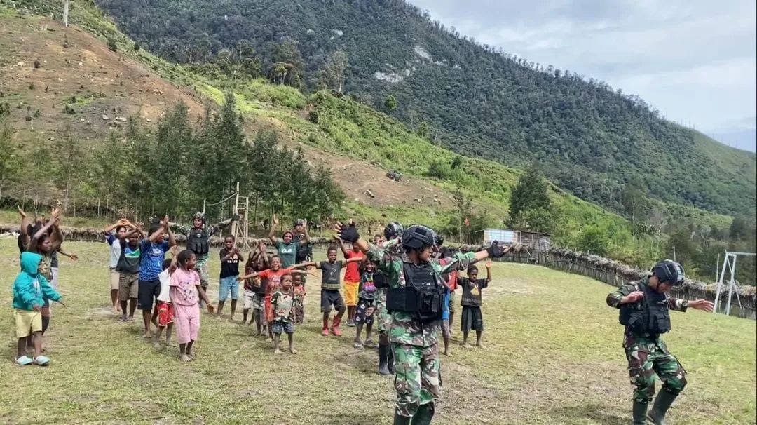 MetropolitanPost.id – Prajurit TNI dari Satgas Yonif R 303/SSM menggelar Senam bersama dengan anak – anak Papua Kampung Wuloni yang dipusatkan di halaman depan Rumah Baca, Distrik Ilaga, Papua, Kamis (20/10/2022).