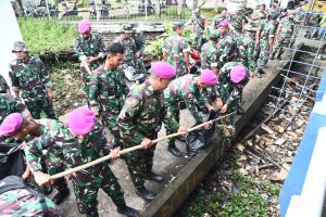 Ratusan prajurit TNI gabungan dari Ketiga Angkatan bersama masyarakat saling bergotong royong dengan semangat membersihkan sampah-sampah yang ada disekitar waterfront dan dekat Penyeberangan Dermaga Feri Kota Pontianak.