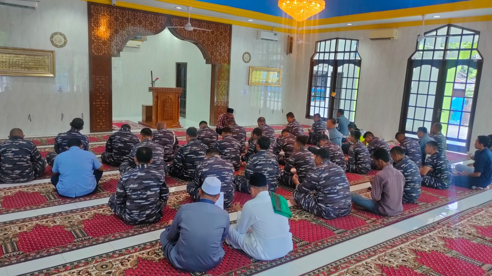 Pelaksanaan doa bersama dipandu oleh PNS Lanal Bintan Saparin usai pelaksanaan Sholat Jum’at.