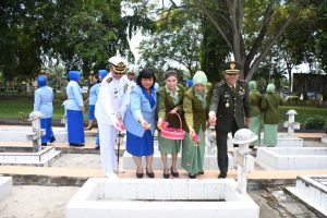 Kegiatan Ziarah tersebut diawali dengan penghormatan yang di Pimpin oleh Danlanal TBA Letkol Laut (P) Aan Prana Tuah Sebayang, SE, D.W.C., selanjutnya peletakan karangan bunga oleh Danlanal TBA di depan Tugu Makam Pahlawan dan Tabur Bunga di Pusara Makam Para Pahlawan oleh PJU Kodim 0208/AS, PJU Lanal TBA, Forkopimda Asahan dan Ketua Cabang 7 Korcab I DJA I Ny. Elisa Aan Sebayang.