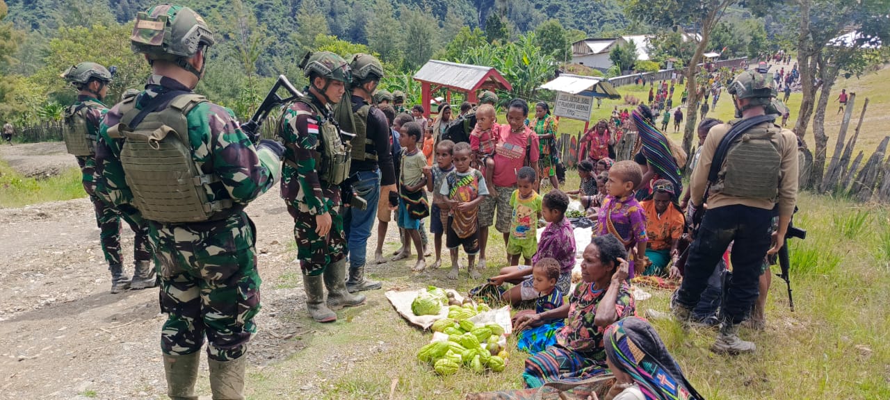 MetropolitanPost.id – Satgas Yonif Raider 509/Balawara Yudha Kostrad, yang bertugas dalam Operasi Pengamanan Perbatasan Mobil RI-PNG di Kabupaten Intan Jaya, Papua Tengah, melaksanakan patroli rutin di Kampung Titigi, Distrik Sugapa, pada Minggu (25/8/2024). Saat melintasi Pasar Titigi, para Prajurit Satgas memanfaatkan momen ini untuk melaksanakan program “ROSITA” dengan membeli hasil tani yang dijual warga setempat.