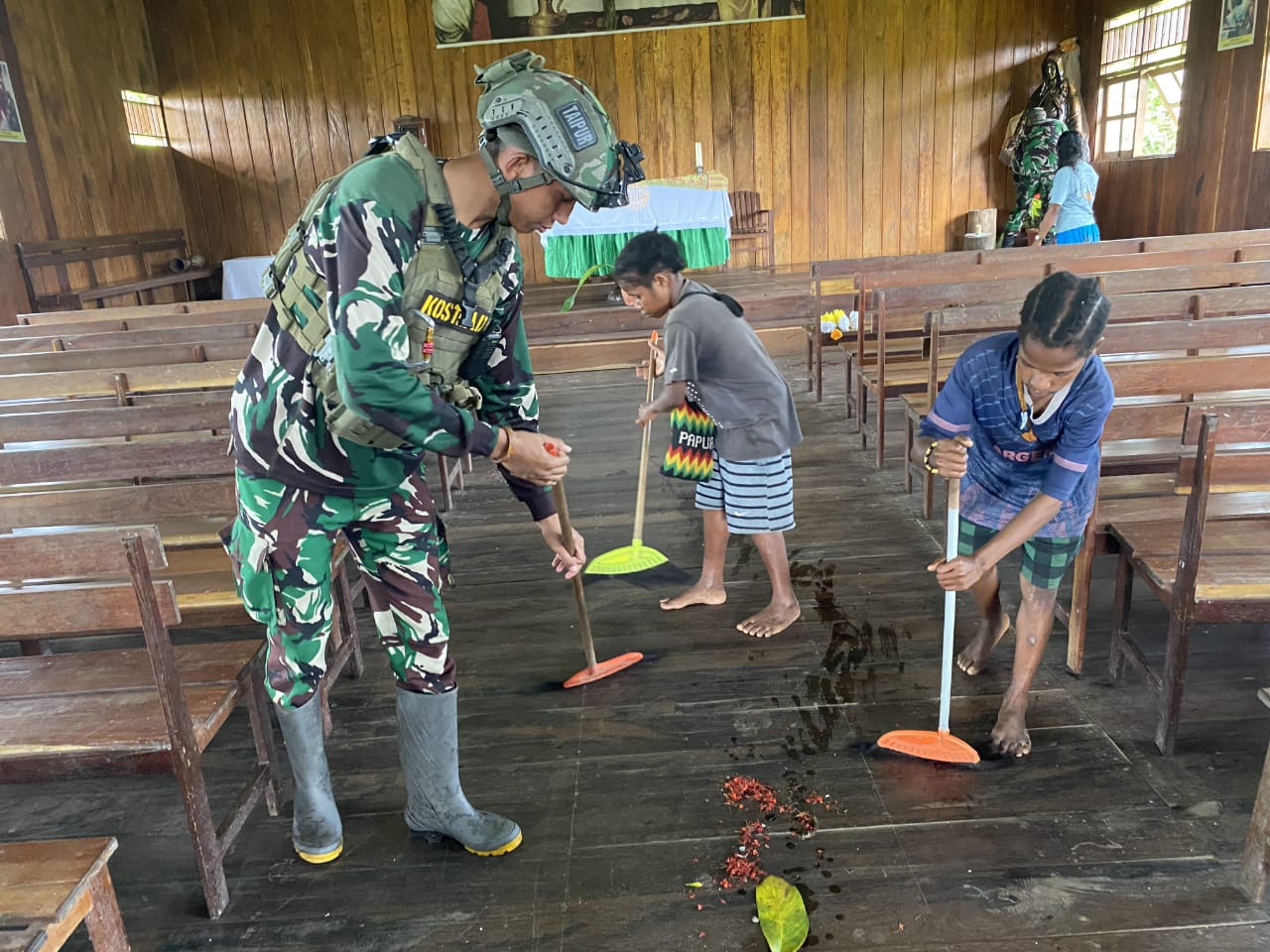 Dalam penekanannya kepada para Prajurit TNI, Komandan Satgas Yonif 503 Kostrad, Letkol Inf Gurbasa Samosir, menyampaikan pentingnya perhatian Satgas kepada kebutuhan dasar masyarakat di sekitar Pos. Oleh sebab itu, sejak hari Senin (19/8), salah satu Perwira Satgas yang ditunjuk, Letda Inf Yudi Riandoko, telah melakukan Komunikasi Sosial dengan Tokoh Masyarakat Kampung Mumugu beserta Pimpinan dan Staf Gereja Quasi Paroki Santo Damian, terkait rencana pembersihan lapangan gereja. Setelah diskusi, telah disepakati waktu pembersihan gereja pada hari Rabu (21/8) di Gereja Quasi Paroki Santo Damian.