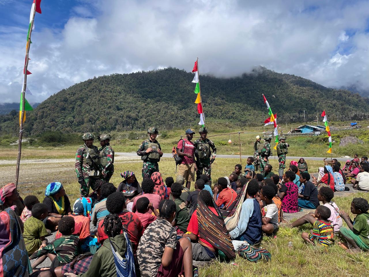 Satuan Tugas Yonif Raider 323/Buaya Putih Kostrad, yang tergabung dalam Komando Operasi HABEMA di Papua, melaksanakan pengamanan di Kampung Kalibuk, Distrik Sinak, Kabupaten Puncak, Papua Tengah, pada Sabtu, (24/8/2024). Dalam rangka memperingati Hari Kemerdekaan ke-79 Republik Indonesia, Pos Sinak Bandara pimpinan Lettu Inf Fauzi mengundang warga Kampung Kalibuk untuk berpartisipasi dalam berbagai perlombaan.