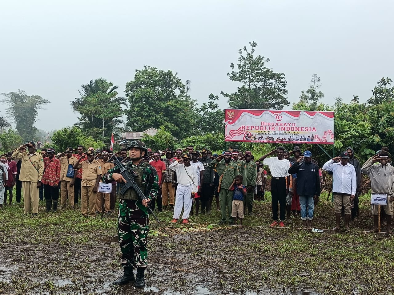 Satgas Habema Gelar Upacara Peringatan Kemerdekaan ke-79 RI di Kampung Mumugu
