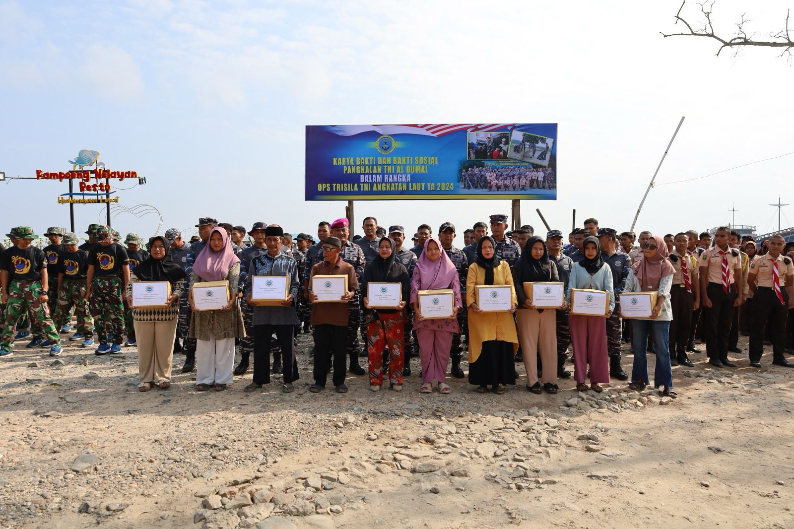 Dalam kegiatan Bakti Sosial Satgas Operasi Trisila TNI AL 2024 melaksanakan pembagian paket sembako sejumlah 50 paket yang diberikan kepada masyarakat yang berada di pesisir Kota Dumai.
