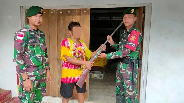 “Satu pucuk senjata api rakitan jenis Lantak diserahkan warga atas nama R (55) kepada Danpos Kantuk Asam Satgas Yonarmed 10/ Bradjamusti Letda Arm Arya Abdi Rekha,” ujar Dansatgas.