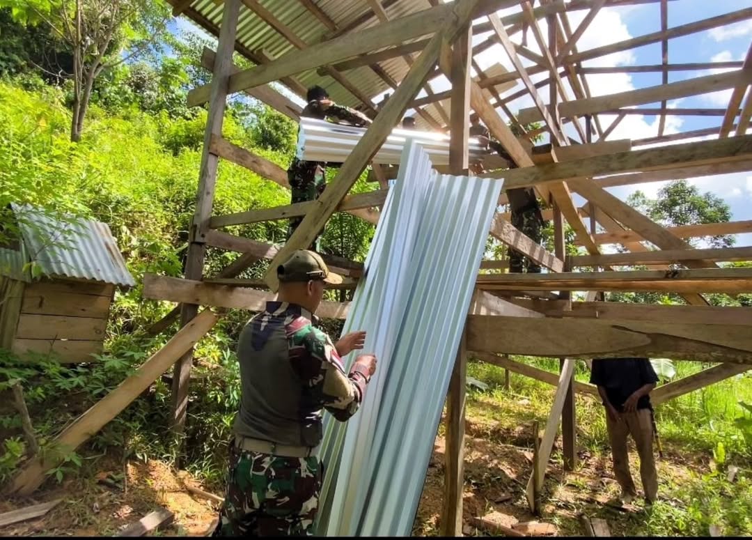 Dalam kegiatan tersebut, prajurit Satgas bersama warga secara bergotong-royong melakukan pemasangan atap seng, yang merupakan bagian penting dalam proses pembangunan rumah. Kegiatan ini bukan hanya membantu dari sisi fisik, tetapi juga mempererat hubungan emosional antara TNI dan masyarakat perbatasan.