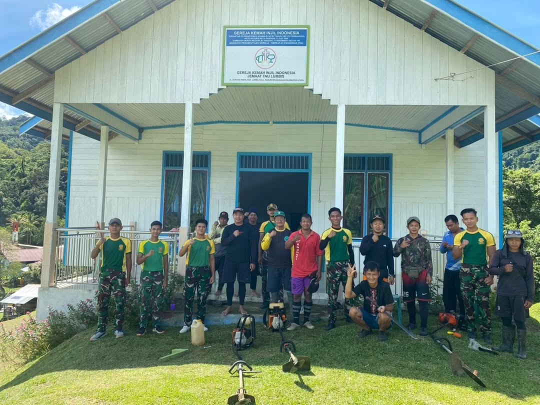Nunukan – Karya Bakti pembersihan di Gereja Kristen Indonesia (GKI) St. Imanuel Tau Lumbis, Desa Tau Lumbis, Kecamatan Lumbis Hulu, Kabupaten Nunukan, pada Rabu (05/2/2025) menjadi salah satu bentuk toleransi antar umat beragama dan wujud kehadiran TNI hingga ke pelosok tanah air.