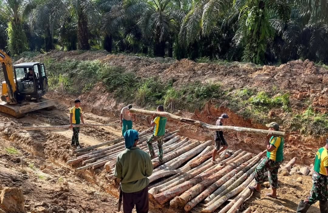 Dalam pelaksanaan kegiatan, terlihat sinergi yang kuat antara personel Satgas dengan warga. Mereka bahu-membahu memikul batang kayu, menyusun pondasi jalan, hingga melakukan pemerataan tanah. Alat berat juga dikerahkan untuk mempermudah proses pengerjaan di medan yang cukup berat.