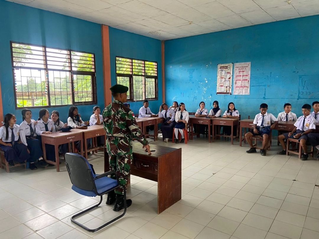 Nunukan – Satgas Pamtas Yonarmed 11 Kostrad Pos Salang menggelar pelatihan wawasan kebangsaan dan Peraturan Baris-Berbaris (PBB) di SMP N 2 Tulin Onsoi, Desa Salang, Kabupaten Nunukan. (14/11/ 2024).