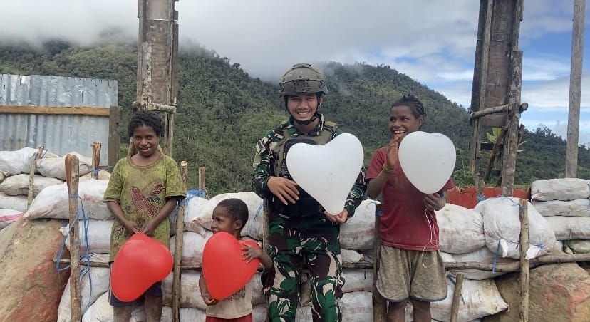 Satgas TNI Bangkitkan Semangat Anak-Anak Yigi Dalam Peringatan Hari Anak Nasional