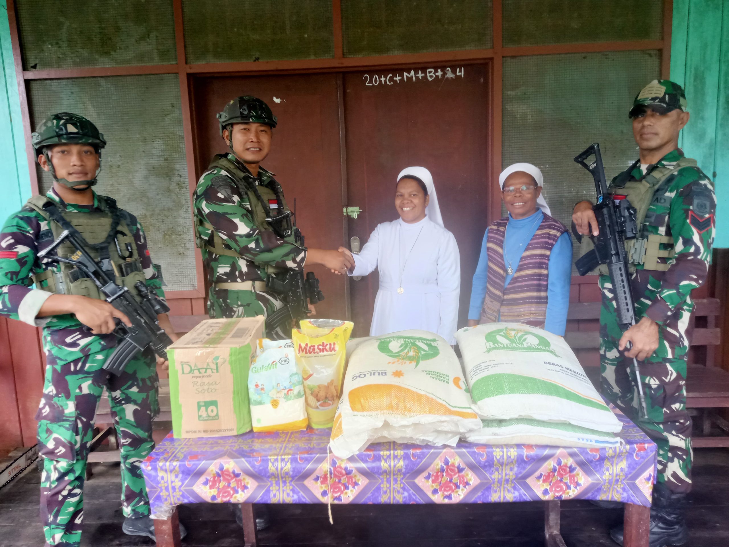 Komandan Satgas Yonif 503 Kostrad, Letkol Inf Gurbasa Samosir, telah menekankan kepada para Prajurit TNI bahwa kegiatan membantu kesulitan masyarakat di daerah tugas merupakan hal yang perlu dilakukan saat melaksanakan tugas pokok pengamanan wilayah. Oleh karenanya, hari Jumat tersebut, para Prajurit Pos Batas Batu dipimpin Lettu Inf Galih Nugroho, memanfaatkan waktu patroli dengan berbagi Sembako kepada para Susteran Distrik Krepkuri.