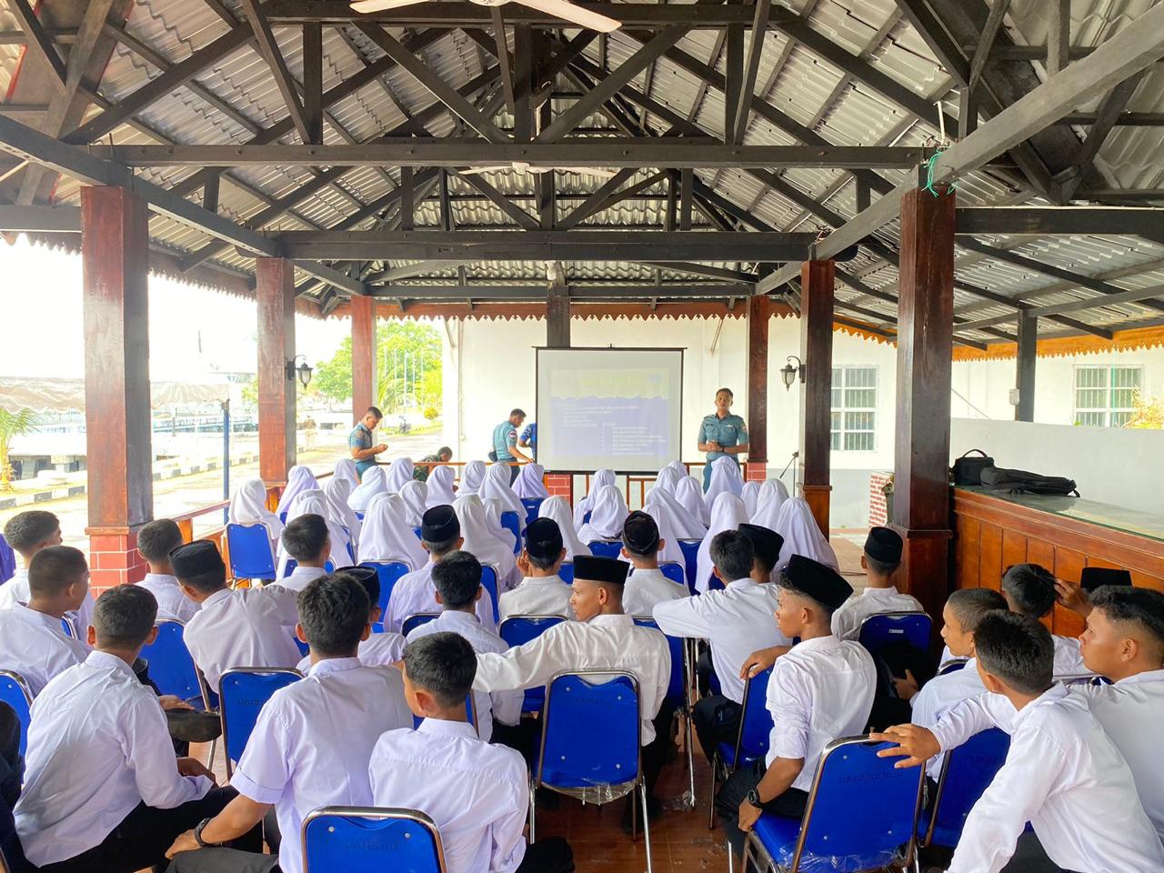 Para pelajar juga diberikan pengetahuan tentang TNI Angkatan Laut melalui pemutaran Film Profil TNI AL, Profil Akademi Angkatan Laut (AAL), Alutsista TNI AL, dan Sosialisasi Penerimaan Prajurit TNI AL.