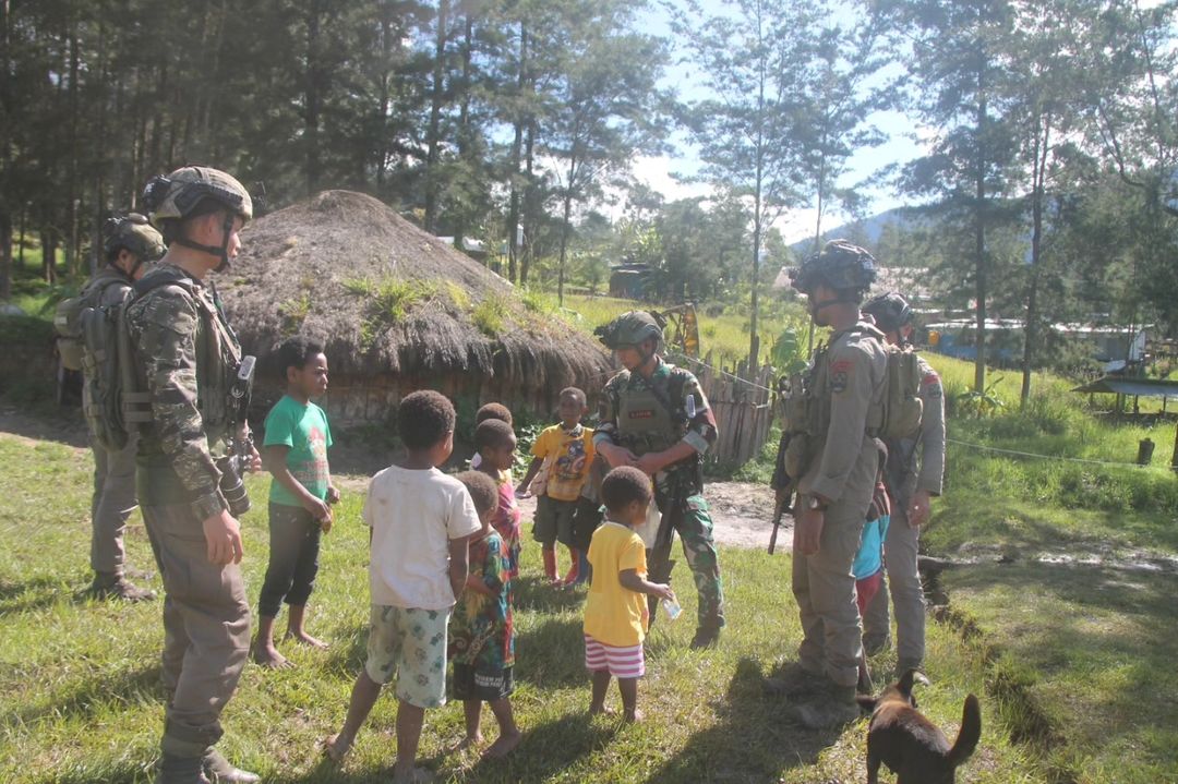 MetropolitanPost.id – Satgas Yonif 323 Buaya Putih bersama Satgas Damai Cartenz Polri mengajak warga untuk mengibarkan bendera Merah Putih dalam rangka menyambut HUT Republik Indonesia (RI) ke-79 dilanjutkan Berbagi Sembako untuk masyarakat Kampung Kago, Distrik Ilaga, Kabupaten Puncak, Papua Tengah, Senin (05/08/2024).