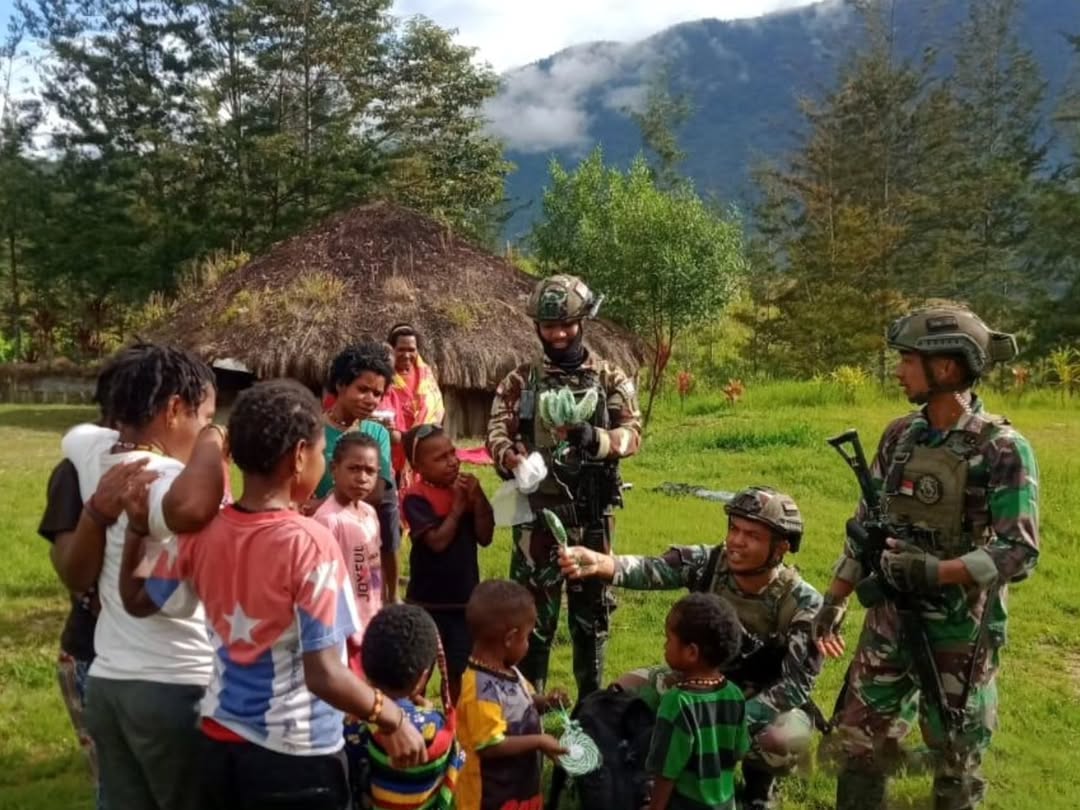 Satgas Yonif 323 Kostrad melaksanakan bakti sosial di Kampung Yegerbaga, Distrik Ilaga, Kab. Puncak, Papua Tengah, Sabtu (18/1/2025).
