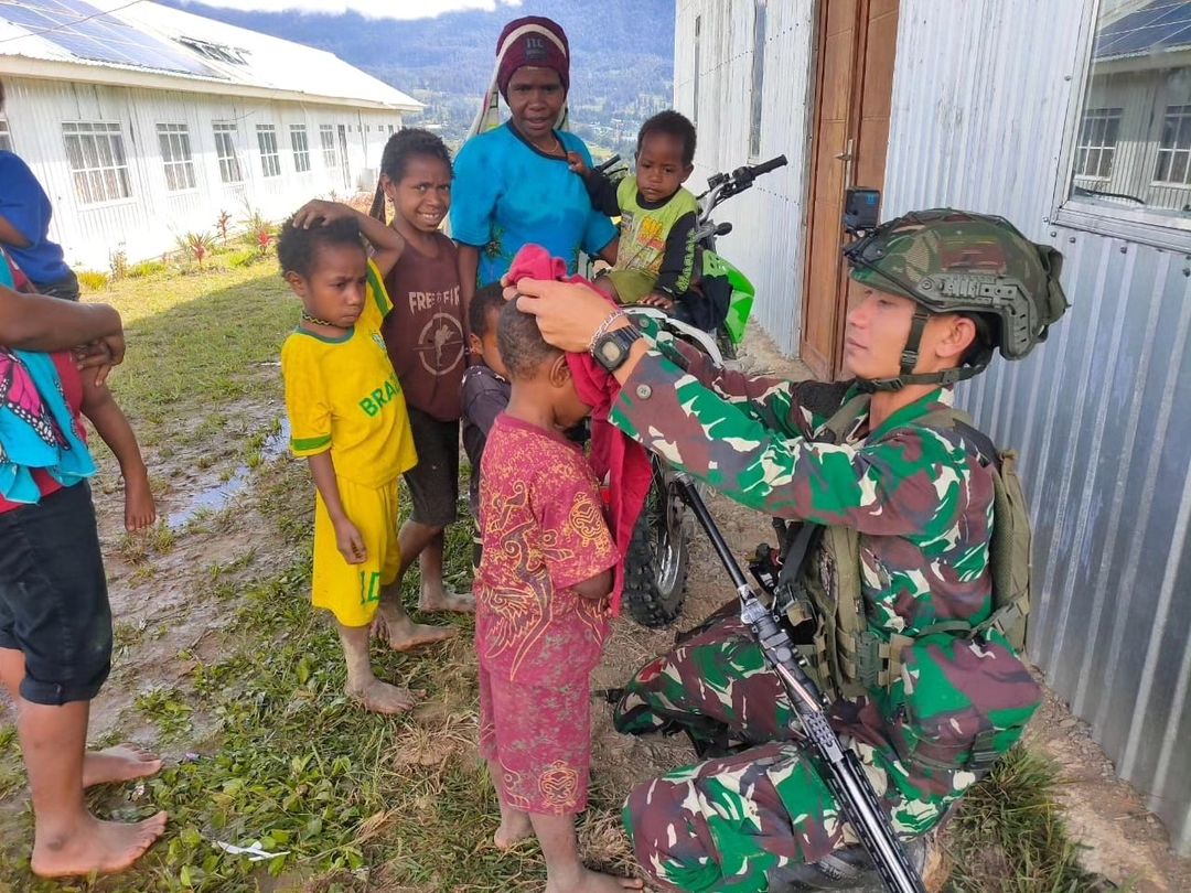 MetropolitanPost.id – Personel Pos Gome Satgas Mobile Yonif 323 Kostrad yang dipimpin oleh Lettu Inf Galang memberikan bantuan berupa pakaian anak-anak serta pengobatan gratis kepada masyarakat Kampung Jenggernok, Distrik Gome, Kabupaten Puncak, Papua. Rabu (12/06/2024).