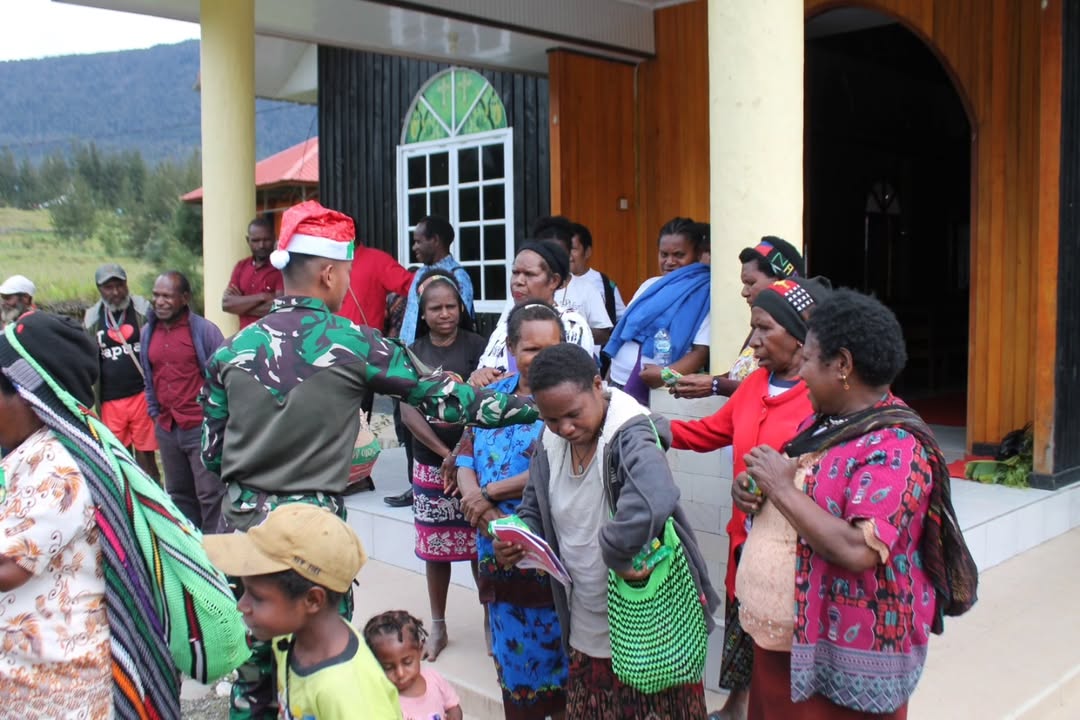Pasiter Satgas Letda Chk Dani menyampaikan, “Kami ingin membawa semangat Natal dan sukacita bagi masyarakat, mempererat kebersamaan dan persaudaraan.”