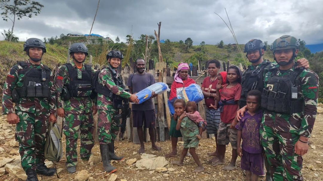 Tagline penugasan, “KOTEKA (Kostrad Tebarkan Kedamaian)”, benar-benar diimplementasikan secara nyata oleh seluruh prajurit Satgas 330 Kostrad yang sedang melaksanakan misi mulia di medan penugasan. Seperti halnya yang terlihat pada Sabtu (4/11/2023), saat keluarga Martin Dwitau yang sedang membangun honai tempat tinggalnya dikagetkan dengan kemunculan secara tiba-tiba sejumlah prajurit Satgas 330 Kostrad dari Pos J2 yang dipimpin Lettu Inf Arief Hidayatullah, selaku Danpos J2.