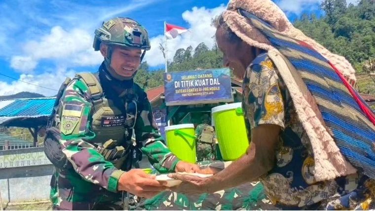 “Terima kasih Bapak TNI yang sering memberikan makanan kepada kami, terutama untuk anak-anak kami. Kami merasa sangat terbantu dengan adanya Bapak TNI disini, selain kami merasa aman, kami juga diperhatikan kesehatannya. Terima kasih Bapak TNI,” ucap salah satu warga. (Penkostrad).