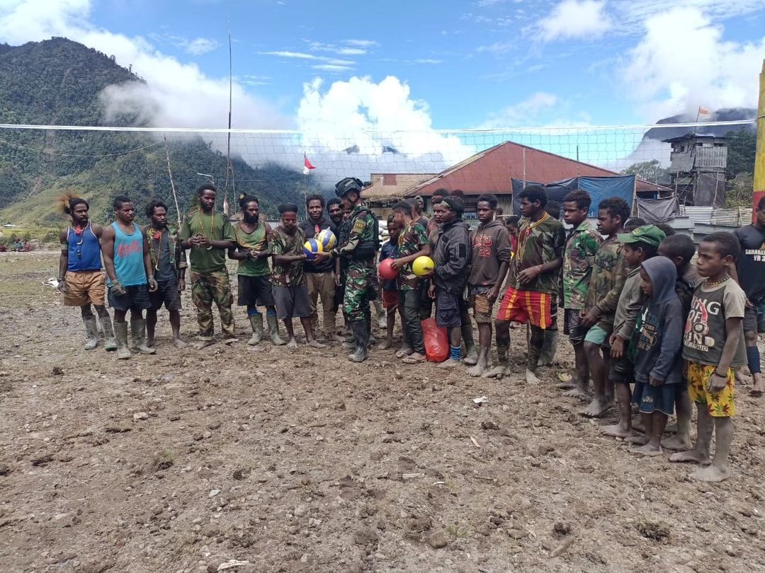 Pembangunan lapangan voli dan pemberian peralatan olahraga ini merupakan bagian dari komitmen Satgas Yonif 433/JS dalam mendukung dan berkontribusi pada pengembangan masyarakat lokal. (Penkostrad).