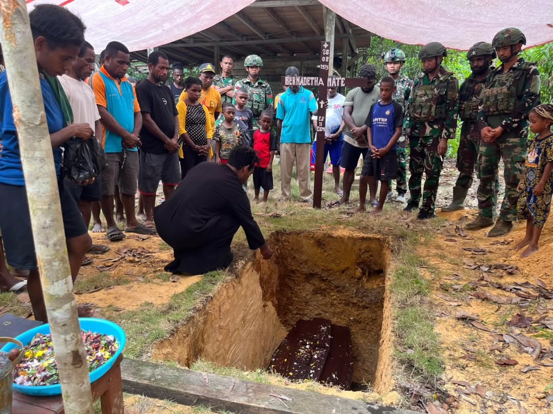 Satgas Yonif 501 Kostrad Bantu Prosesi Pemakaman di Kampung Fuog