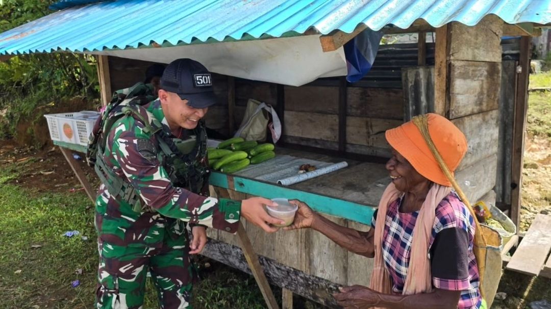 Satgas Yonif 501 Kostrad Laksanakan Aksi Berbagi Pada Jum’at Berkah di Masyarakat dan SD YPK Susumuk