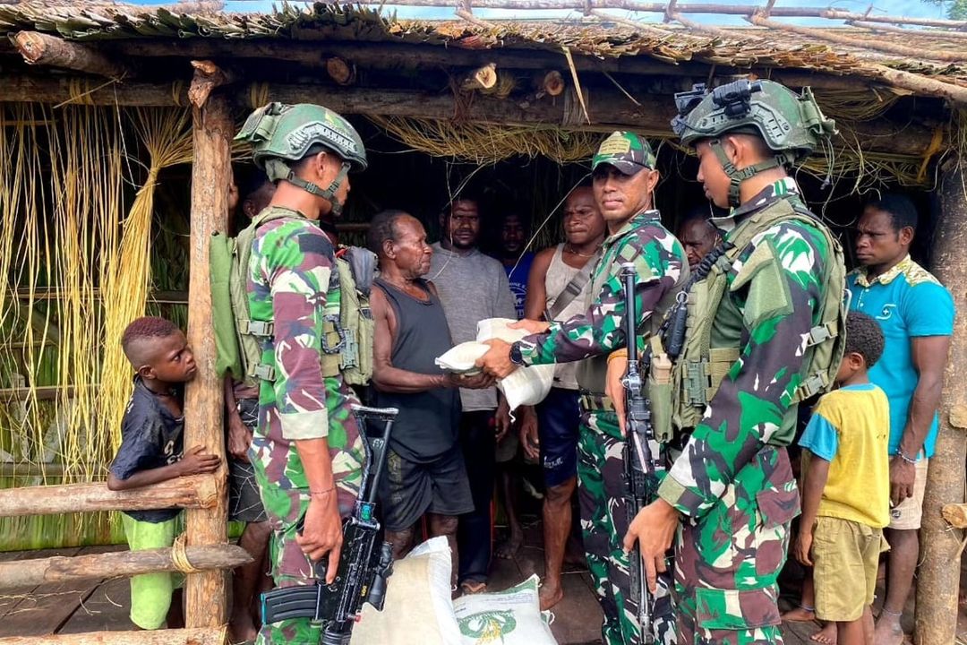 MetropolitanPost.id – Satgas Pamtas Mobile Yonif 503 Kostrad Koops Habema memberikan dukungan berupa sembako dalam rangka pembangunan rumah adat Jew kepada Suku Asmat di Batas Batu, Kabupaten Nduga, Papua, Selasa (14/05/2024).
