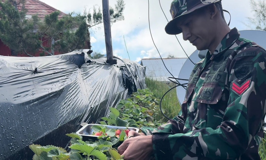 Upaya ini dilakukan dengan persiapan matang, mulai dari pengolahan tanah, penanaman bibit, hingga perawatan yang telaten. Hasilnya, tanaman stroberi tumbuh subur dan menghasilkan buah dengan kualitas yang baik, menciptakan kebanggaan tersendiri bagi prajurit dan masyarakat setempat.