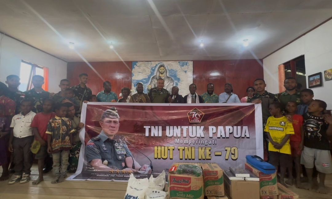 Dalam rangka memperingati HUT ke-79 TNI, Satgas Yonif 509 Kostrad kembali menunjukkan kepeduliannya kepada masyarakat di wilayah Intan Jaya, Papua. Mereka memberikan bantuan berupa solar cell untuk penerangan Gereja Bazemba, alat musik, dan sembako kepada jemaat gereja. Bantuan ini diserahkan langsung oleh personel Satgas Yonif 509 Kostrad setelah jemaat selesai melaksanakan ibadah di gereja tersebut.
