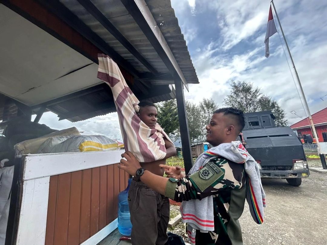 “Terimakasih kepada bapak TNI yang sudah memberikan saya makanan, potongan rambut, dan baju baru. Saya senang dengan bapak TNI yang selalu peduli kepada masyarakat dan teman-teman saya. Semoga bapak TNI selalu sehat dan diberkati,” ucap Melianus.