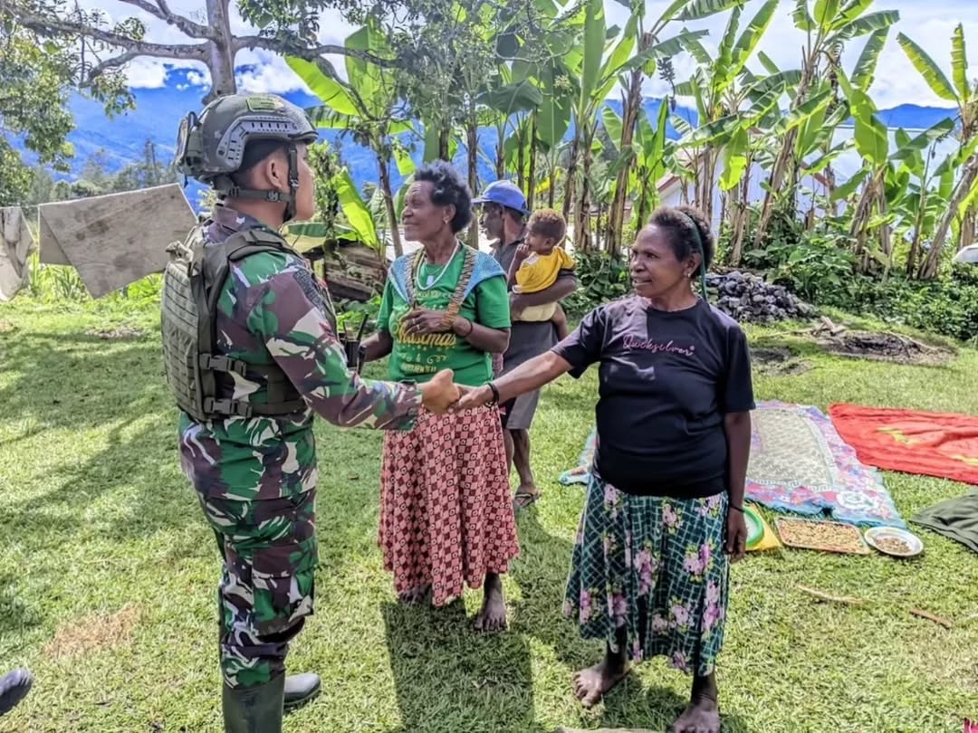 Selain kegiatan di sekolah, prajurit Satgaster juga melaksanakan komunikasi sosial dengan masyarakat sekitar. Mereka turun langsung ke pasar tradisional membeli bahan makanan dari mama-mama Papua, kemudian memasak dan menikmati makan siang bersama warga. Momen kebersamaan ini menjadi simbol eratnya kemanunggalan TNI dengan rakyat.