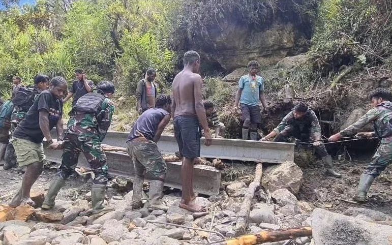 MetropolitanPost.id – Pedalaman Pegunungan Tengah Papua kini menyaksikan wujud nyata pengabdian TNI, khususnya Prajurit Satgas Yonif 433 Kostrad dari Divif 3 Kostrad. Mereka bersama masyarakat setempat telah berhasil membangun jembatan penghubung antara Distrik Dal dan Distrik Mbua di atas Sungai Pan-Pan, Distrik Dal. Pembangunan jembatan sepanjang 8 meter dan lebar 4 meter ini merupakan solusi konkret untuk mengatasi keterlambatan distribusi logistik dan bahan makanan yang kerap terjadi di wilayah ini.