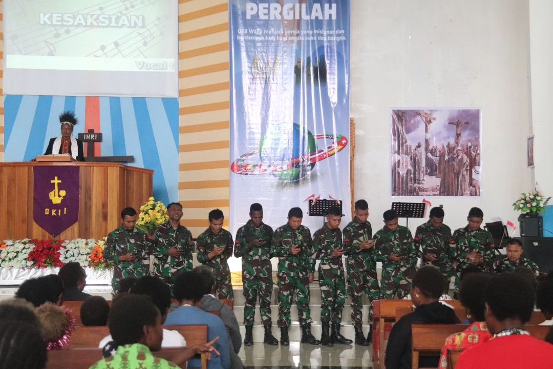 Pada kegiatan tersebut, suara merdu lantunan lagu rohani dari grup vokal Satgas Yonif 330 Kostrad turut tampil mengiringi kegiatan ibadah minggu.
