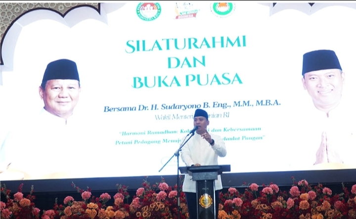 METROPOLITAN POST– Wakil Menteri Pertanian Republik Indonesia, Sudaryono, menggelar acara buka puasa bersama pengurus Tani Merdeka Indonesia, Pedagang Pejuang Indonesia Raya (Papera), dan Asosiasi Pedagang Pasar Seluruh Indonesia (APPSI).