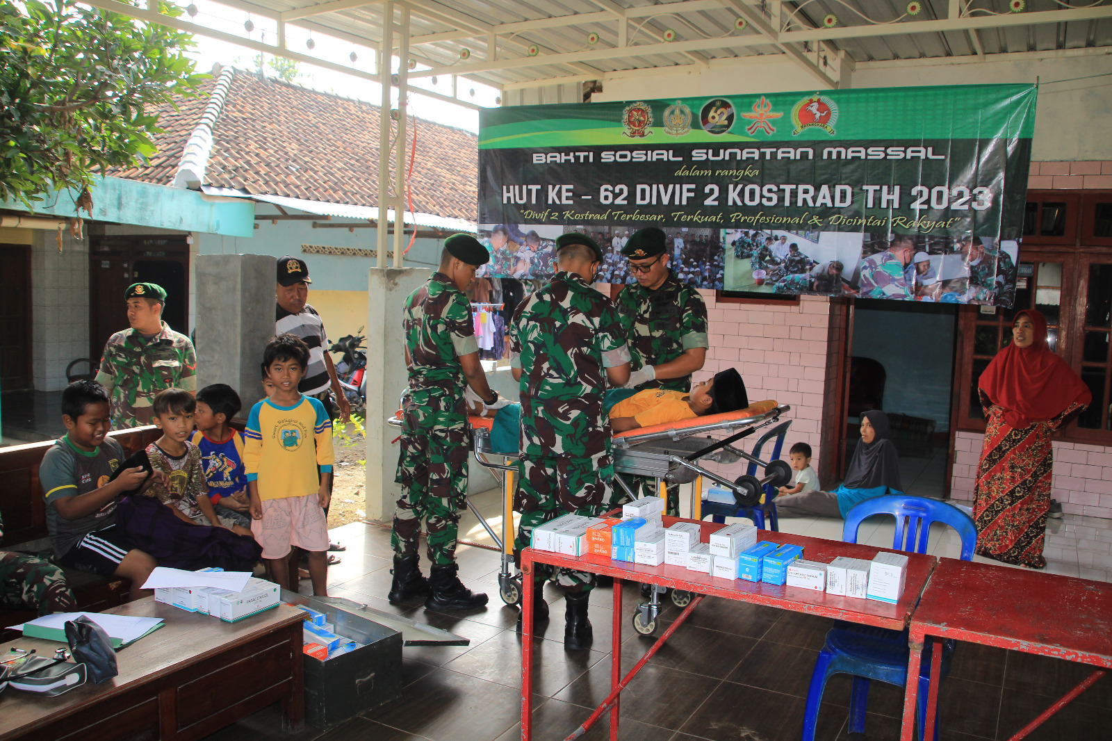 Kegiatan Bakti Sosial Sunatan Massal dan berobat gratis ini digelar dalam rangka memperingati Hut Ke – 62 Divif 2 Kostrad Tahun 2023, dengan dipimpin langsung Lettu Ckm Fajar Nugroho Indriatmo selaku dokter Batalyon. Desa Parengan merupakan desa binaan Yonif Para Raider 503/Mayangkara, dengan jarak kurang lebih 1 Km dari Batalyon, menjadi sasaran utama Kegiatan Bakti Sosial Sunatan Massal serta berobat gratis. “Alhamdulillah terima kasih 503 atas berobat gratisnya, semoga saya cepat sembuh” ujar salah satu masyarakat Desa Parengan.