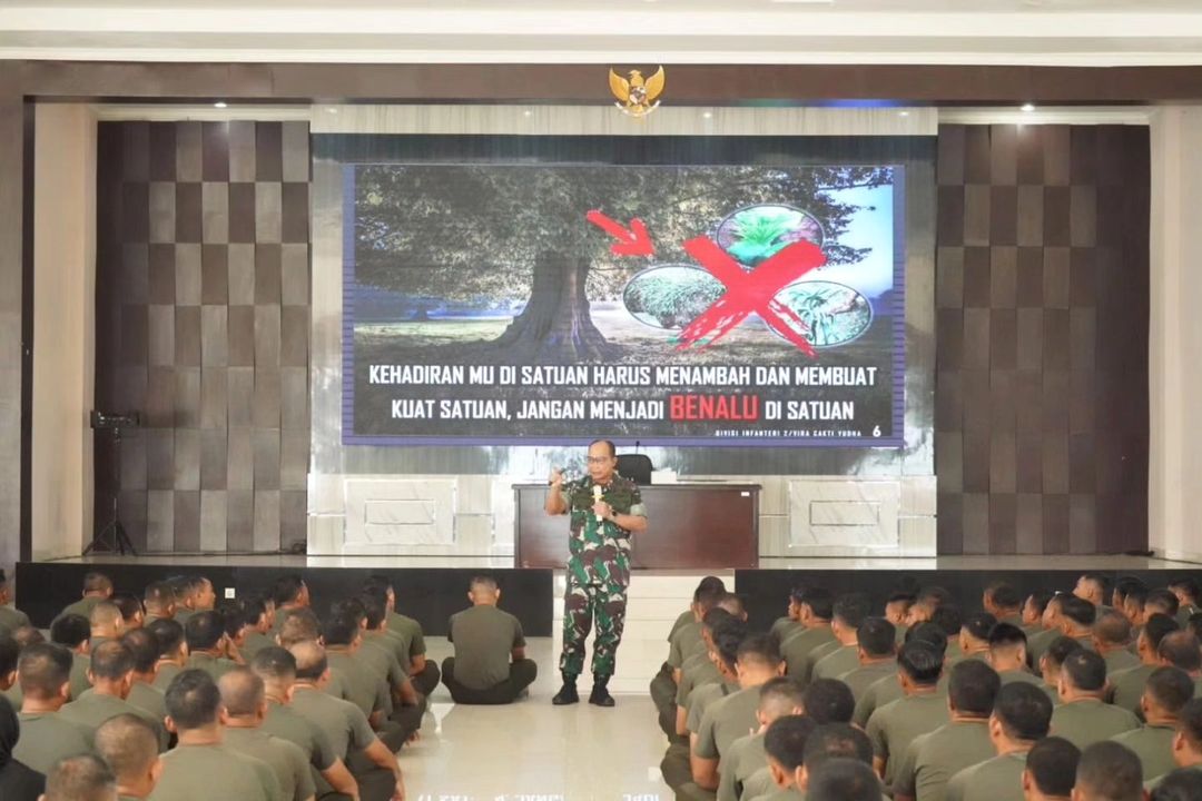 MetropolitanPost.id – Bertempat di Gedung Sandoyo Madivif 2 Kostrad, Singosari, Kab. Malang, Panglima Divisi Infanteri 2 Kostrad Mayjen TNI Anton Yuliantoro, S.I.P., M.Tr.(Han)., memberikan pengarahan kepada seluruh prajurit satuan dalam Madivif 2 Kostrad. Hadir dalam pengarahan tersebut seluruh pejabat utama Divif 2 Kostrad. Jumat (21/06/2024).