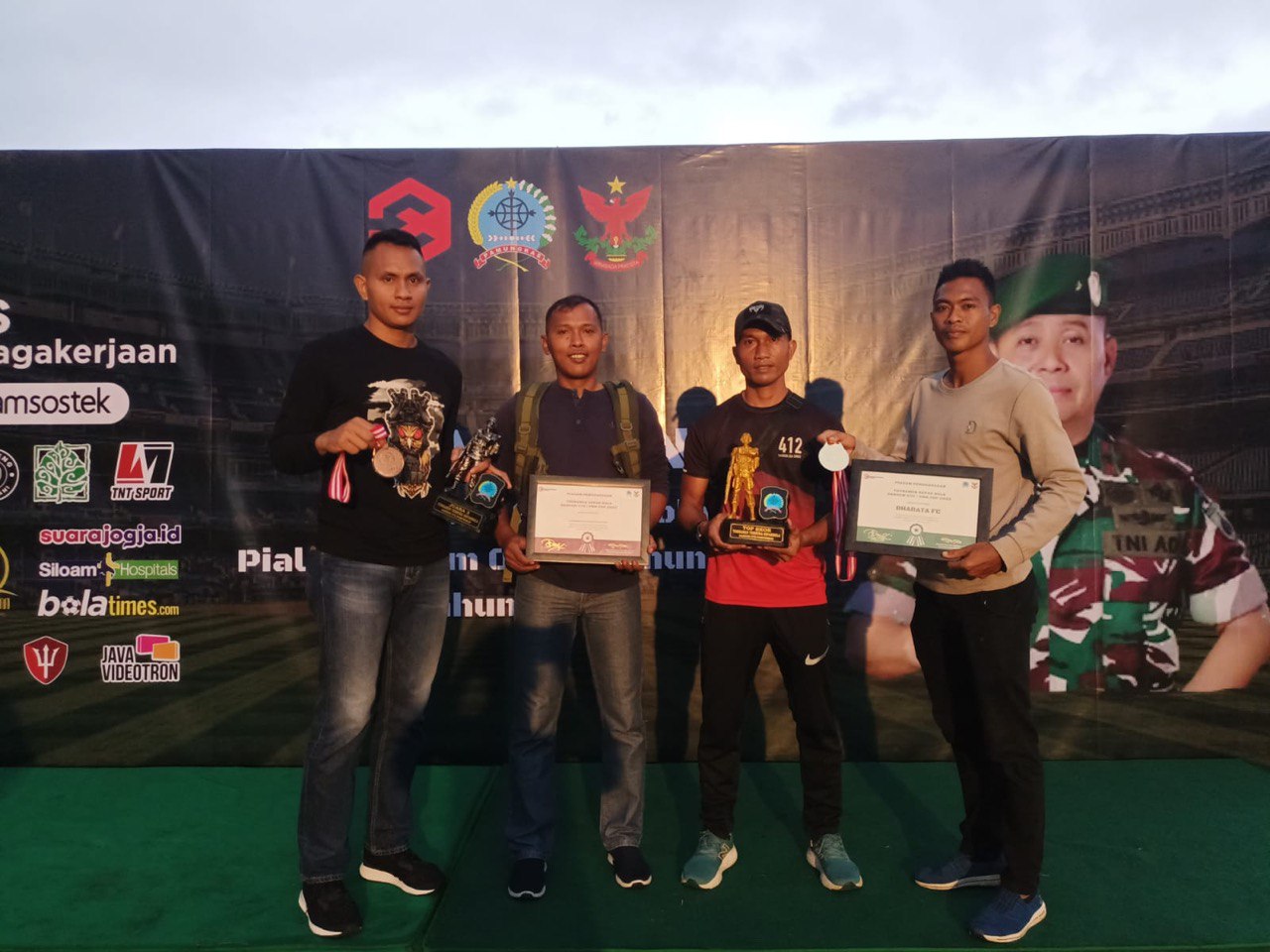 Kepala BPJS Yogyakarta, Bapak Teguh Wiyono langsung memberikan sertifikat dan uang pembinaan kepada Tim Bharata FC yang diwakili oleh Sertu Endryanto.