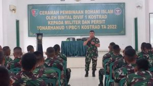 Kegiatan diawali dengan menyanyikan Lagu Indonesia Raya kemudian dilanjutkan dengan ceramah oleh Pabintal Divif 1 Kostrad Mayor Caj Dwinanto Murdiat Aji, S.Ag yang mengusung tema ” Bintal Sebagai Pemupuk Diri dan Siraman Rohani Agar Keimanan Semakin Mantap.”